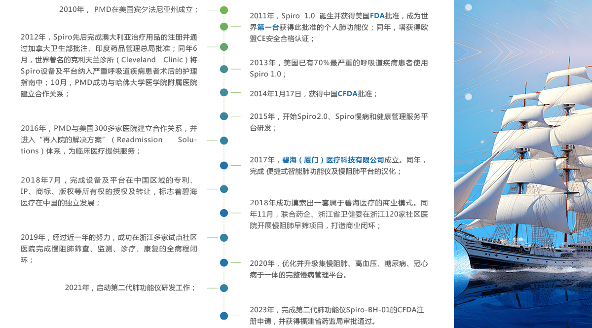 碧海(廈門)醫(yī)療科技有限公司是一家專注于慢阻肺院外診斷、持續(xù)監(jiān)測及用藥評測的全病程醫(yī)療服務企業(yè),已獲得臨床認證與市場準入。公司依托自主研發(fā)并獲得CFDA認證的便攜式肺功能儀,攜手政府部門、醫(yī)療機構、健康小屋及體檢中心等多方資源,對慢阻肺患者進行早期篩查與精準定位,為患者提供覆蓋診斷、監(jiān)測、干預及康復的居家醫(yī)療級管理服務。